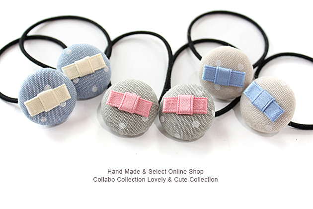 デニム地風ドット柄くるみボタン◎りぼん付きデザイン キッズ ヘアゴム ヘアアクセサリー 髪飾り 髪留め 保育園 幼稚園 くるみボタン