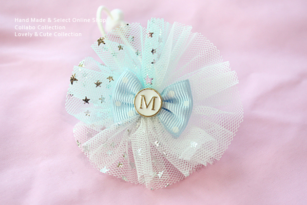 イニシャル付き◎3colorスノーカラー星柄&無地チュールサークルデザイン ヘアアクセサリー 子供 髪留め 髪飾り 幼稚園 保育園 イニシャル プレゼント ヘアゴム キッズ イニシャル