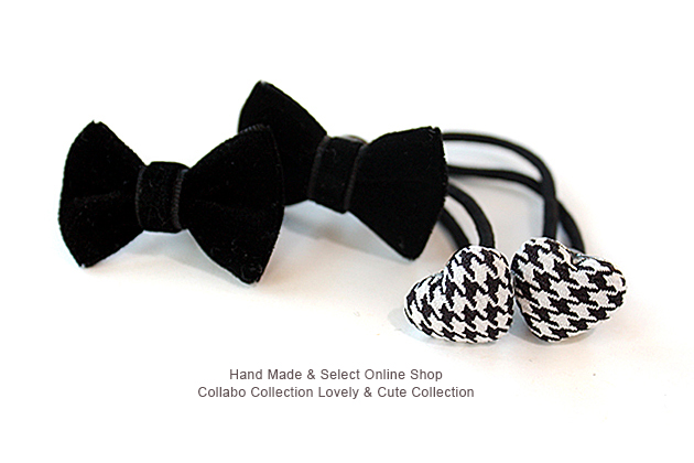 2本セットへアゴム 25mm幅無地ブラックベロアリボン& miniハート型千鳥柄くるみボタンパーツデザイン 子供 キッズ ヘアゴム ヘアアクセサリー 髪留め 髪飾り シンプル 結婚式 入学式 卒業式