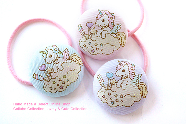 ユニコーン柄くるみボタンデザイン キッズ ヘアゴム ヘアアクセサリー 髪飾り 髪留め 保育園 幼稚園 くるみボタン ユニコーン