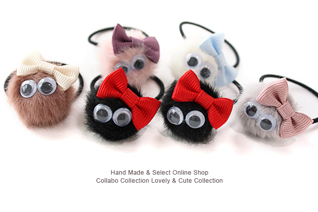 りぼん&動く目玉付き◎miniminiフェイクファーボンボンデザイン ヘアゴム キッズ 子供 ヘアアクセサリー 髪飾り 髪留め 保育園 幼稚園 フェイクファー りぼん 秋冬