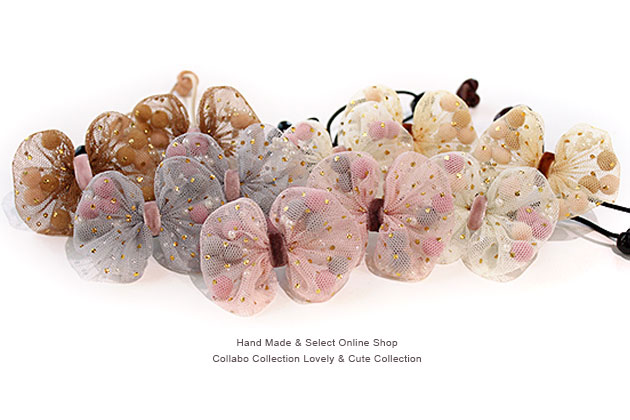 スモークカラー◎Goldドット柄チュール袋りぼん◎ ポンポン&miniminiパール入りデザイン ヘアゴム キッズ 子供 ヘアアクセサリー 春夏 可愛い 髪飾り スモークカラー チュール ポンポン リ
