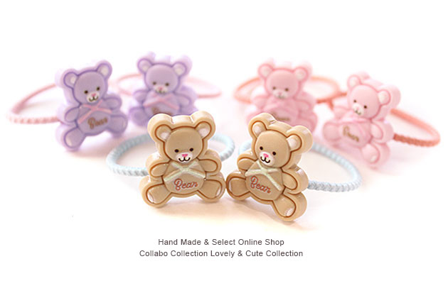 りぼん付きパステルカラーベアーパーツデザイン ヘアゴム キッズ 子供 パーツ 可愛い ヘアアクセサリー 髪留め 髪飾り 幼稚園 小学校 保育園 ベアー くま お洒落