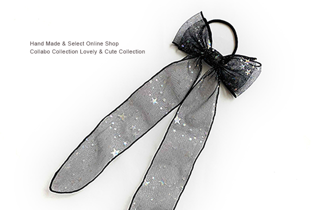BIGふんわり足付きリボン◎Blackオーロラ星柄チュールデザイン 子供 キッズ ヘアゴム ヘアアクセサリー 髪飾り 髪留め 保育園 幼稚園 フォーマル りぼん 卒業式 入学式 チュール