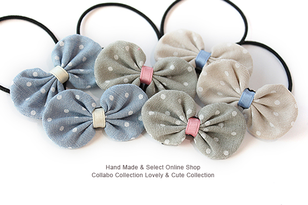 デニム地風ドット柄袋りぼんデザイン キッズ ヘアゴム ヘアアクセサリー 髪飾り 髪留め 保育園 幼稚園 袋りぼん