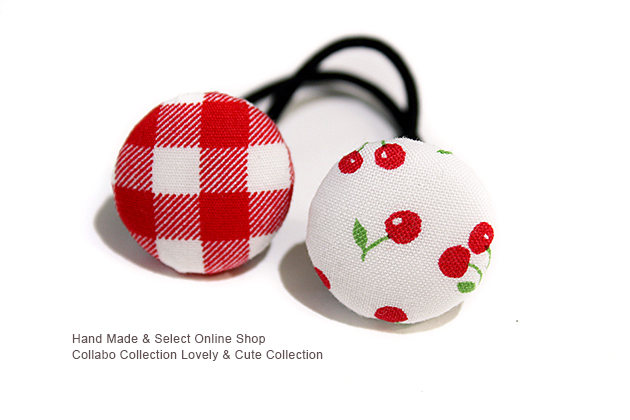 さくらんぼ&レッドチェックくるみボタンデザイン キッズ ヘアゴム ヘアアクセサリー 髪飾り 髪留め 保育園 幼稚園 くるみボタン
