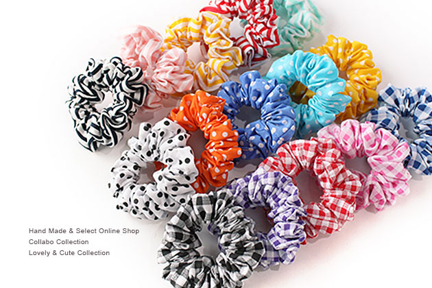 ドット チェック ストライプ柄デザイン ヘアゴム キッズ 子供 髪留め 髪飾り ヘアアクセサリー シュシュ 夏 ユニコーン ワンポイント ポニーテール ハンドメイド