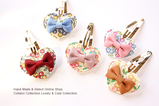 木の実柄ハート型ワッペン◎りぼん付きデザイン◎ピン キッズ 子供 髪飾り 髪留め ヘアアクセサリー ヘアゴム パッチンピン ハート りぼん