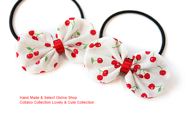 さくらんぼ柄袋りぼんデザイン キッズ ヘアゴム ヘアアクセサリー 髪飾り 髪留め 保育園 幼稚園 袋りぼん