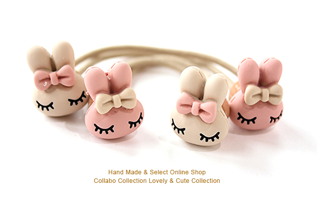 シックなカラー◎リボン付きお眠りうさぎ◎クレイ風パーツデザイン ヘアゴム キッズ 子供 パーツ 可愛い ヘアアクセサリー 髪留め 髪飾り 幼稚園 小学校 保育園 秋冬 お洒落
