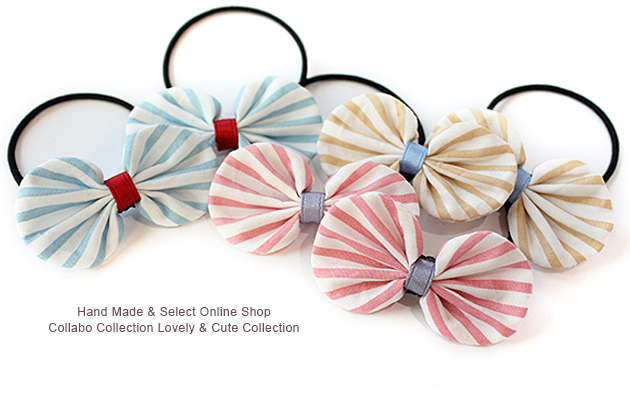 ストライプ柄袋りぼんデザイン キッズ ヘアゴム ヘアアクセサリー 髪飾り 髪留め 保育園 幼稚園 袋りぼん