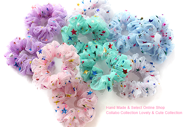 Mix星柄チュールデザイン キッズ ヘアゴム 子供 髪留め ヘアアクセサリー シュシュ ゆめかわ 髪飾り