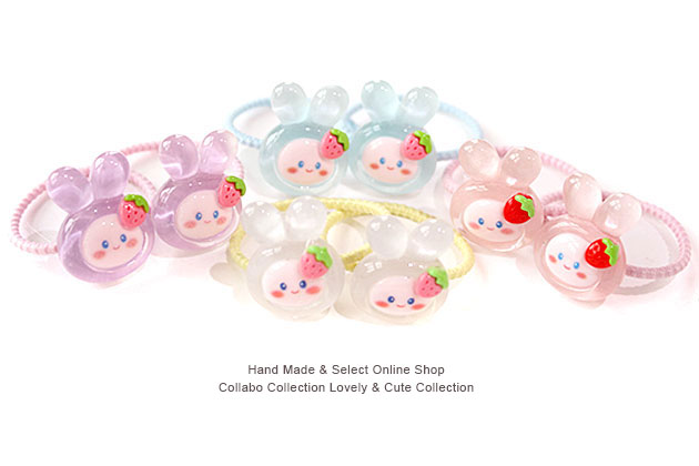 クリアいちご付き着ぐるみうさちゃんデザイン ヘアゴム キッズ 子供 ヘアアクセサリー 髪飾り 髪留め 保育園 幼稚園 うさぎ
