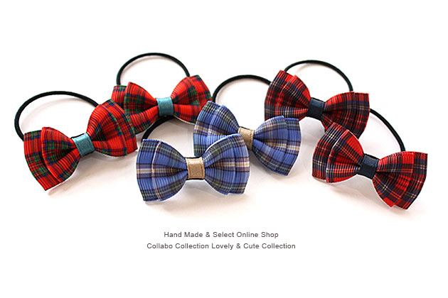 25mm幅2段重ねりぼん◎タータンチェック柄デザイン ヘアゴム キッズ ヘアアクセサリー 子供 髪飾り 髪留め りぼん デイリー 幼稚園 保育園 チェック