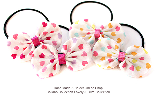 カラフルハート柄袋りぼんデザイン キッズ ヘアゴム ヘアアクセサリー 髪飾り 髪留め 保育園 幼稚園 袋りぼん