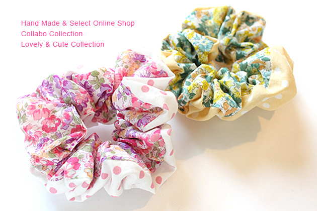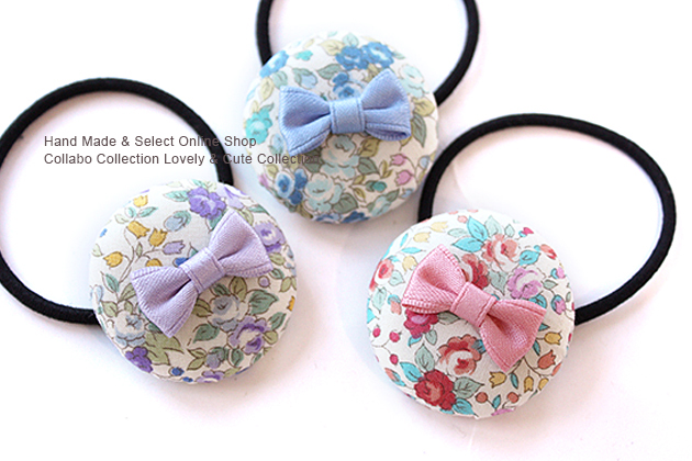 in リバティ&ドット柄デザイン ヘアゴム キッズ 子供 髪留め 髪飾り ヘアアクセサリー シュシュ 夏 花 リバティ ワンポイント ポニーテール ハンドメイド