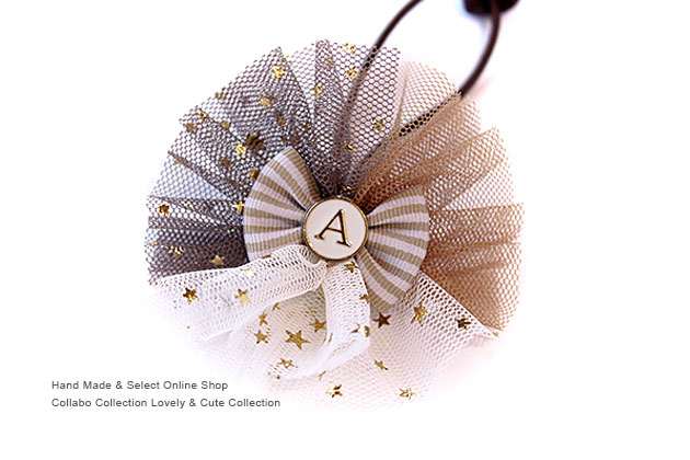 イニシャル付き◎ブラウン系3color星柄&無地チュールサークルデザイン ヘアアクセサリー 子供 髪留め 髪飾り 幼稚園 保育園 イニシャル プレゼント ヘアゴム キッズ イニシャル