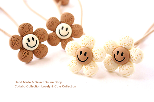 シックなカラー◎スマイル柄フラワーにこちゃん クレイ風パーツデザイン ヘアゴム キッズ 子供 パーツ 可愛い ヘアアクセサリー 髪留め 髪飾り 幼稚園 小学校 保育園 秋冬 お洒落