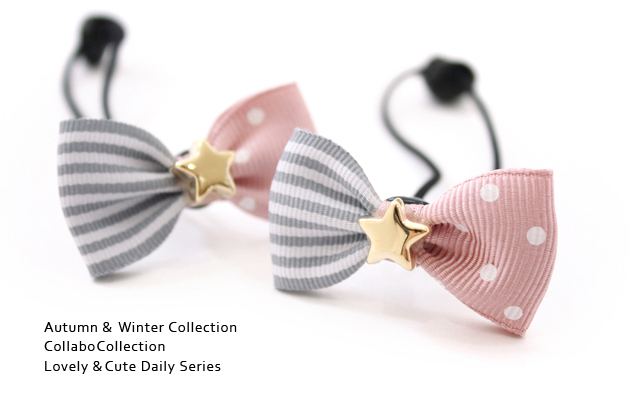 ツートンデザイン◎ストライプ&グログランドット◎miniゴールドスター付きりぼんデザイン キッズ 子供 ヘアゴム ヘアアクセサリー 髪留め 髪飾り デイリー 保育園 幼稚園 りぼん