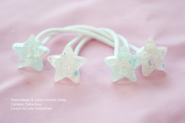 ホワイト&アイスブルーシェル入りminiスターパーツデザイン ヘアゴム キッズ 子供 パーツ 可愛い ヘアアクセサリー 幼稚園 小学校 保育園 星 スター