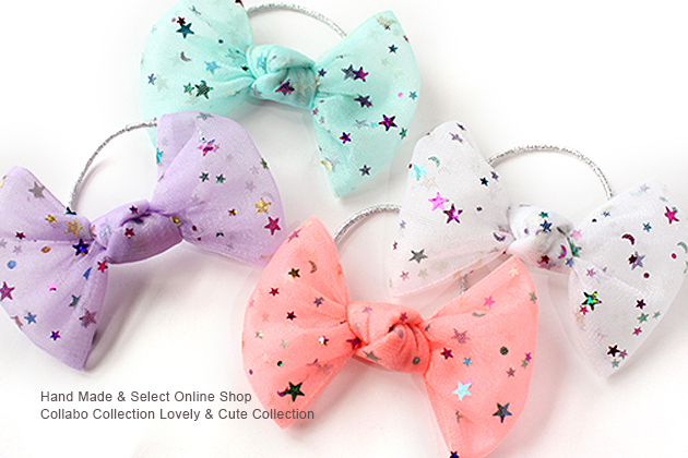 星柄チュール◎スクエアりぼんデザイン◎ラメゴム ヘアゴム キッズ 子供 ヘアアクセサリー 春夏 可愛い 髪飾り 髪留め チュール リボン