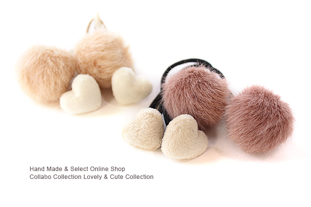 miniminiフェイクファーボンボン&ボアminiハート型くるみボタンデザイン ヘアゴム キッズ 子供 ヘアアクセサリー 髪飾り 髪留め 保育園 幼稚園 フェイクファー りぼん 秋冬