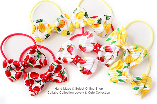 25mm幅2段重ねりぼん◎フルーツ柄デザイン ヘアゴム キッズ ヘアアクセサリー 子供 髪飾り 髪留め りぼん デイリー 幼稚園 保育園 フルーツ