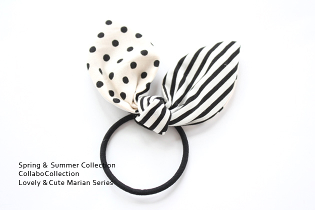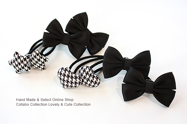 マリアンりぼん◎ブラックドット&ブラックストライプ柄デザイン キッズ ヘアゴム 子供 髪留め ヘアアクセサリー マリアン キッズ ヘアゴム