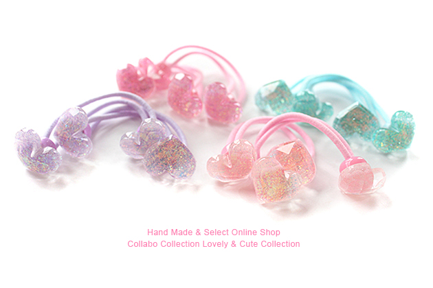 クリアラメハート◎クリスタル風カットパーツデザイン ヘアゴム キッズ 子供 パーツ 可愛い ヘアアクセサリー 幼稚園 小学校 保育園 ハート 髪飾り 髪留め