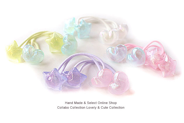 オーロラジュエル風スター&ハートパーツデザイン ヘアゴム キッズ 子供 パーツ 可愛い ヘアアクセサリー 幼稚園 小学校 保育園 星 ハート 毎日 髪飾り 髪留め