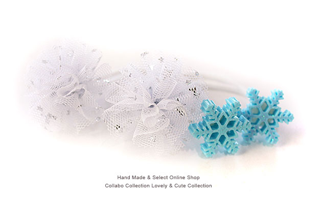 &雪の結晶パーツデザイン キッズ ヘアゴム 子供 髪留め ヘアアクセサリー 髪飾り チュール 雪の結晶 星