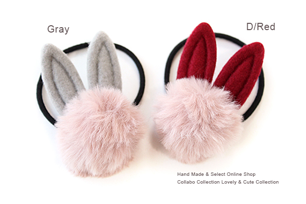 立体うさ耳付きフェイクファーボンボンパーツデザイン 子供 キッズ ヘアゴム ヘアアクセサリー 髪飾り 髪留め 幼稚園 保育園 りぼん うさぎ うさ耳 フェイクファー