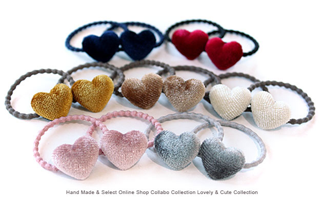 ベロアハート型くるみボタンデザイン ヘアゴム キッズ 子供 ヘアアクセサリー ヘアアレンジ 髪飾り 髪留め 保育園 幼稚園 くるみ パーツ ベロア ハート