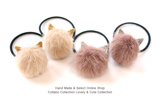 セクエルねこ耳型付き◎miniminiフェイクファーボンボンデザイン ヘアゴム キッズ 子供 ヘアアクセサリー 髪飾り 髪留め 保育園 幼稚園 フェイクファー りぼん 秋冬