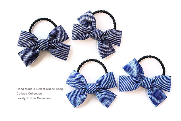 15幅デニム地風◎ダブルりぼんデザイン ヘアゴム キッズ 子供 ヘアアクセサリー 髪飾り 髪留め 保育園 幼稚園 毎日 フォーマル 通園 通学 パーツなし デニム