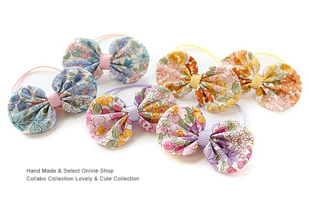 リバティ柄袋りぼんデザイン キッズ ヘアゴム ヘアアクセサリー 髪飾り 髪留め 保育園 幼稚園 袋りぼん