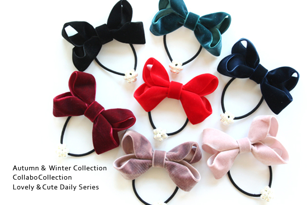 ツイストりぼん◎ベロア&パール玉デザイン ヘアゴム キッズ 子供 ヘアアクセサリー 秋冬 可愛い 髪飾り 髪留め 保育園 幼稚園 フォーマル