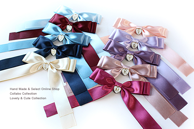 ハート型片面イニシャル付き◎垂れ下がり4段重ねリボン◎ 25幅上質サテンデザイン 子供 キッズ ヘアゴム ヘアアクセサリー 髪留め 髪飾り シンプル 結婚式 入学式 卒業式 フォーマル 幼稚園 保