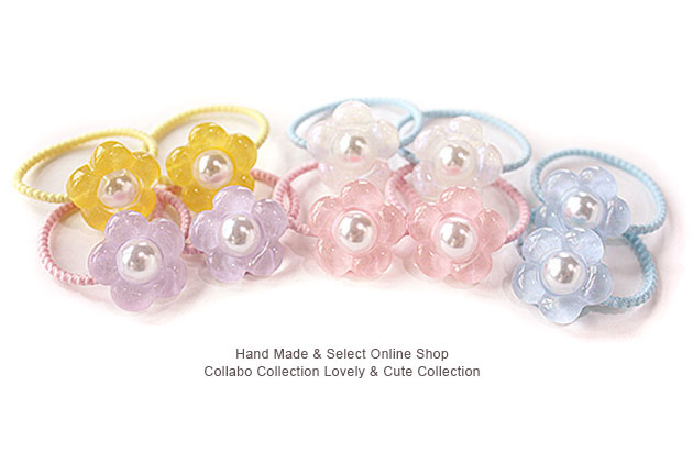 パール付きクリアシンプルぷくっとお花パーツデザイン ヘアゴム キッズ 子供 ヘアアクセサリー 髪飾り 髪留め 保育園 幼稚園 パステル お花