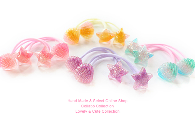 ラメ入りグラデーション◎miniスター&シェルパーツデザイン ヘアゴム キッズ 子供 パーツ 可愛い ヘアアクセサリー 幼稚園 小学校 保育園 星 スター 貝殻 シェル