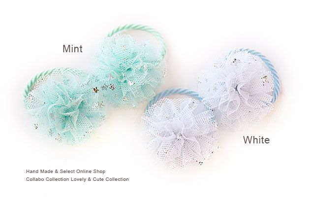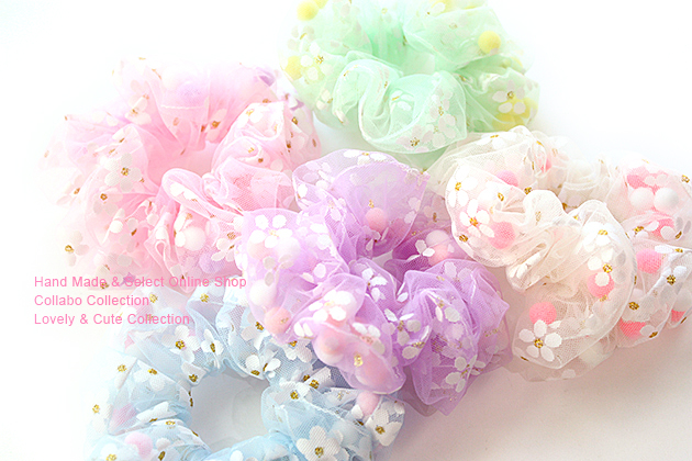 花柄チュール◎miniポンポン入りデザイン キッズ ヘアゴム 子供 髪留め ヘアアクセサリー シュシュ ゆめかわ 髪飾り