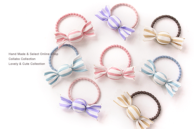 ストライプ生地◎miniminiキャンディーデザイン ヘアゴム キッズ 子供 ヘアアクセサリー 春夏 可愛い 髪飾り 髪留め チュール キャンディー ゆめかわ お菓子 飴 スウィーツ