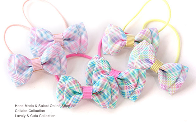 25mm幅2段重ねりぼん◎Mixカラフルチェック柄デザイン ヘアゴム キッズ ヘアアクセサリー 子供 髪飾り 髪留め りぼん デイリー 幼稚園 保育園 チェック