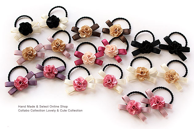 miniサテンお花付き上質サテンダブル細りぼんデザイン キッズ ヘアゴム ヘアアクセサリー 子供 髪飾り 髪留め フォーマル 入園式 入学式 卒園式 卒業式