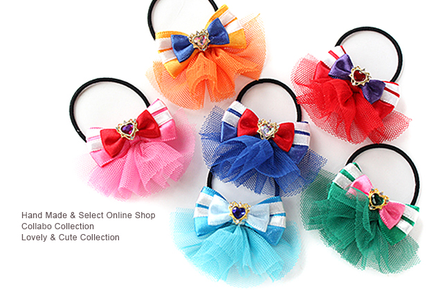 スクールりぼん◎25mm幅サテンりぼん&チュールスカート◎ miniりぼん&キラキラストーンハートパーツ付きデザイン ヘアゴム キッズ ヘアアクセサリー 子供 髪留め 髪飾り 幼稚園 保育園 プレゼン