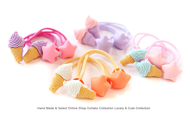 ソフトクリーム&ころりんスターパーツデザイン ヘアゴム キッズ 子供 パーツ 可愛い ヘアアクセサリー 幼稚園 小学校 保育園 ソフトクリーム お菓子 スウィーツ