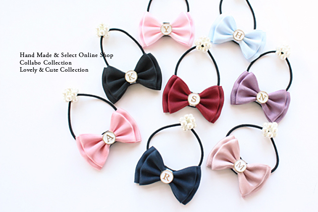 イニシャル付き◎2段重ねりぼん◎幅広上質サテン&パール玉デザイン 子供 キッズ ヘアゴム ヘアアクセサリー 髪留め 髪飾り シンプル 結婚式 入学式 卒業式 フォーマル 幼稚園 保育園 デイリー