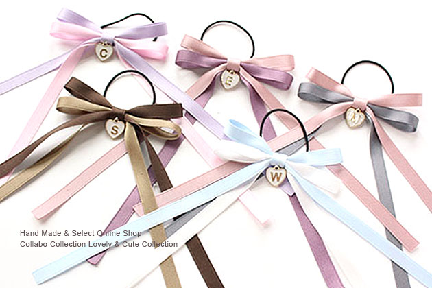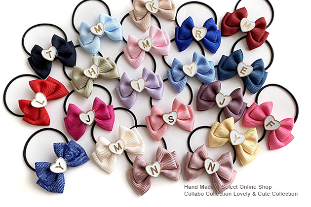 ハート型片面イニシャル付き◎2色ダブルりぼん垂れ下がり◎ 10幅上質サテンデザイン 子供 キッズ ヘアゴム ヘアアクセサリー 髪留め 髪飾り シンプル 結婚式 入学式 卒業式 フォーマル 幼稚園