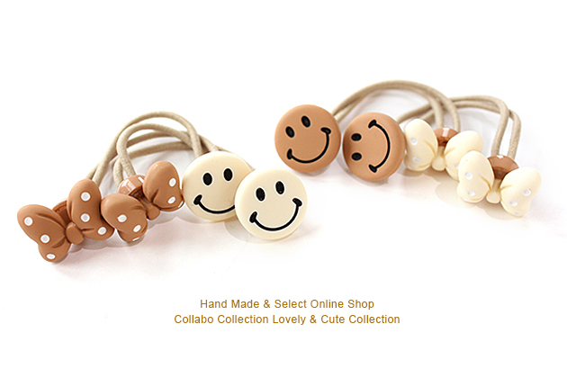 シックなカラー◎にこちゃん&りぼん◎クレイ風パーツデザイン ヘアゴム キッズ 子供 パーツ 可愛い ヘアアクセサリー 髪留め 髪飾り 幼稚園 小学校 保育園 秋冬 お洒落