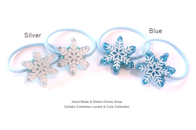 ラメ入り雪の結晶パーツデザイン ヘアゴム キッズ 子供 ヘアアクセサリー 髪飾り 髪留め 保育園 幼稚園 パーツ クリスマス 雪の結晶